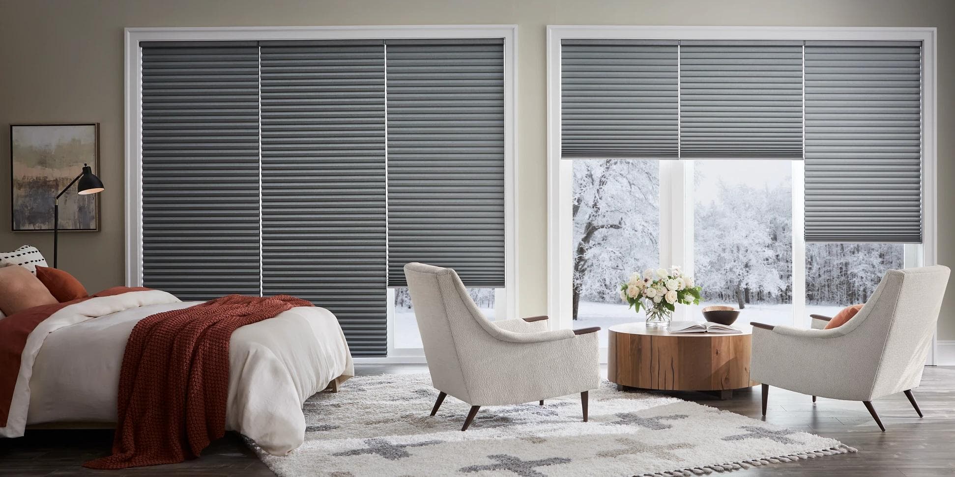 The unique cell-within-a-cell design of Honeycomb and Cellular Shades traps air in distinct pockets, keeping your house warmer when temperatures drop and cooler when they rise.