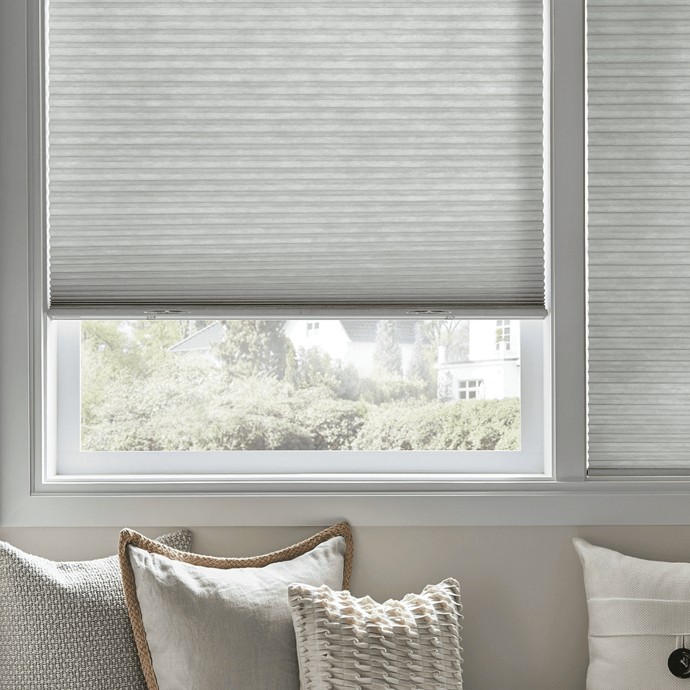 Effortlessly control your shades at home or on the go with a simple touch or voice command.