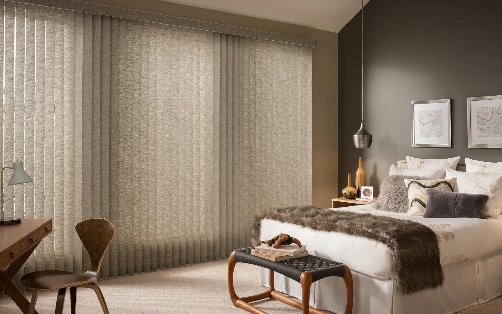 Traditional window shades that operate top to bottom may not be the best fit for sliding doors that open and close side to side. A vertical application is the move — you’ll get privacy and light control without losing access.