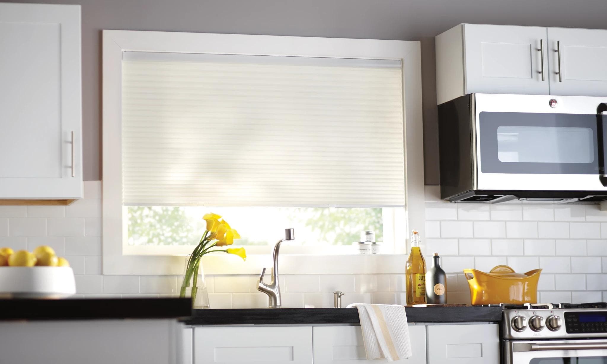 Privacy is the first factor you will likely want to consider when choosing the perfect kitchen window treatments. You may not think kitchen window treatments are necessary until you suddenly realize your neighbor can see straight into your breakfast nook. If you don’t want an audience watching you in your robe and slippers on any given morning, you might consider adding a level of privacy to your windows. Alta offers several styles of window treatments that add privacy while still allowing light to filter through the kitchen windows.