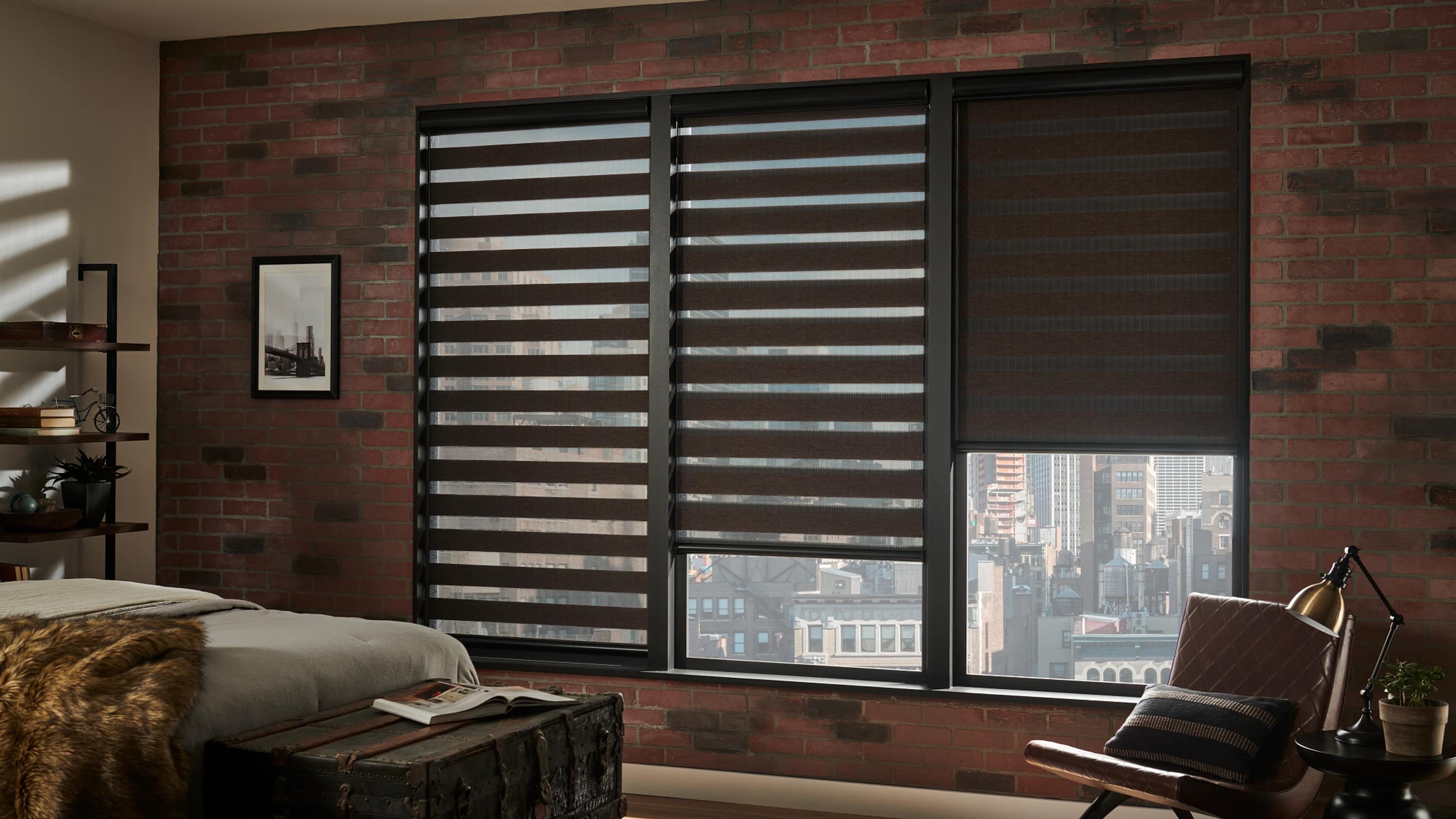For a room that already receives high levels of daylight, these black window treatments add a seamless touch of elegance. Sheer, light-filtering shadings or banded shades are also a great option that fits any room’s light qualities.