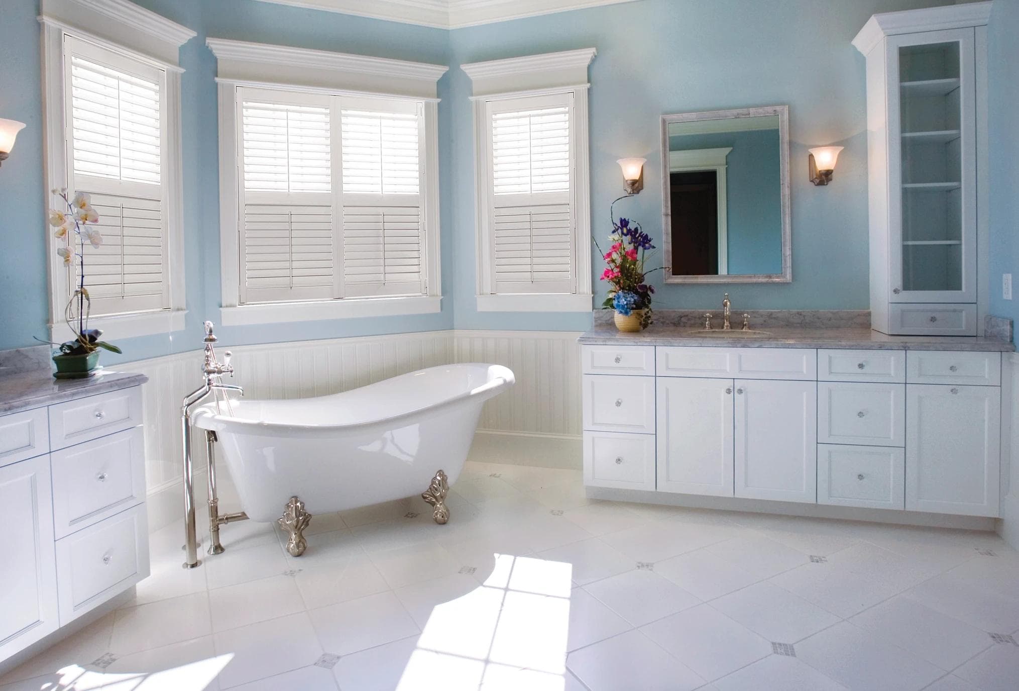 Bathroom windows can be challenging. Some are larger than others, and they are usually close to water. You undoubtedly want privacy, but using the right material will be imperative. Anything made of faux materials or water-resistant material will be the best choice for the bathroom. You might also want to pick window treatments that are easy to wipe down to diminish the risk of mold. Learn more about our faux wood blinds and custom shutters.