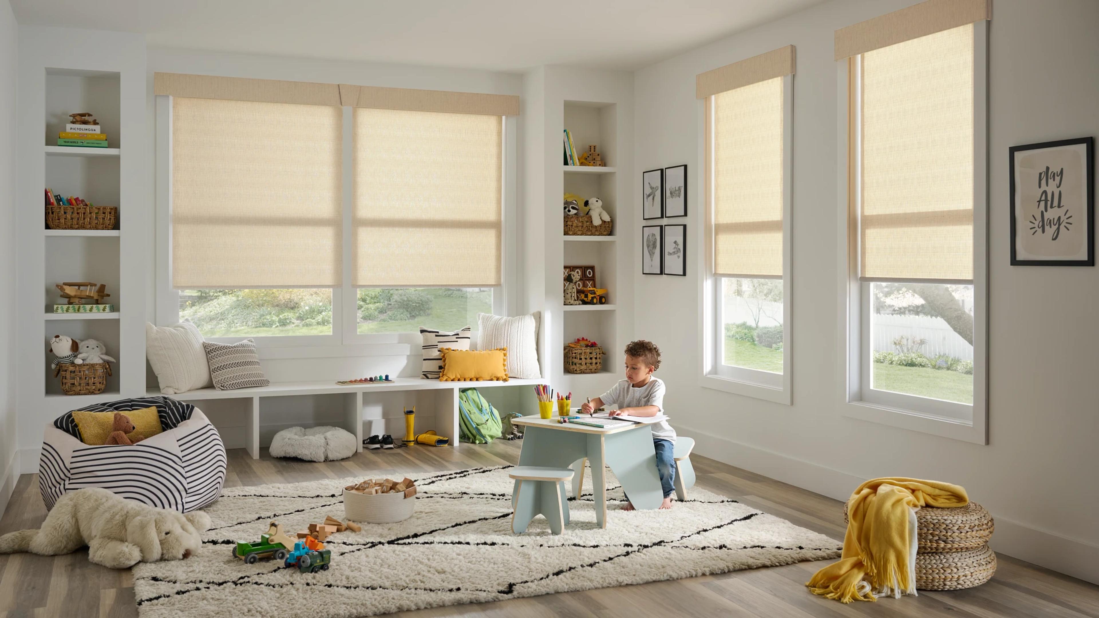 Alta believes providing an ultra-safe environment for your family should be a top priority. The child-safe window treatment options are tested and examined at the highest level to avoid accidental injury. Motorized blinds and shades are also great options to consider for safe kid’s room window treatments. With just a push of a button, the motor does the work for you. These shades can also be controlled remotely or by using wireless technology. With several motorized window treatment options, you are sure to find the perfect one for your home.