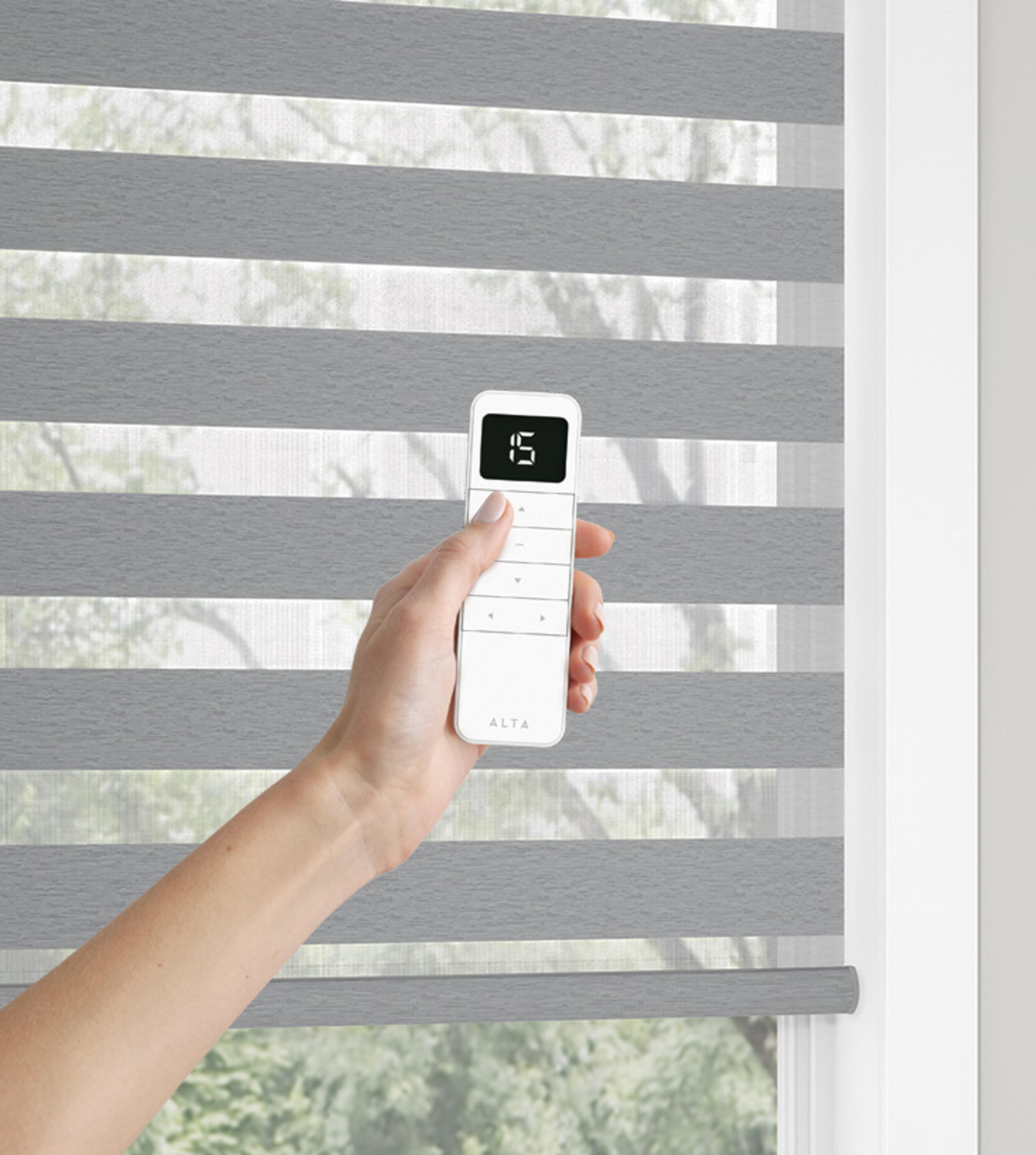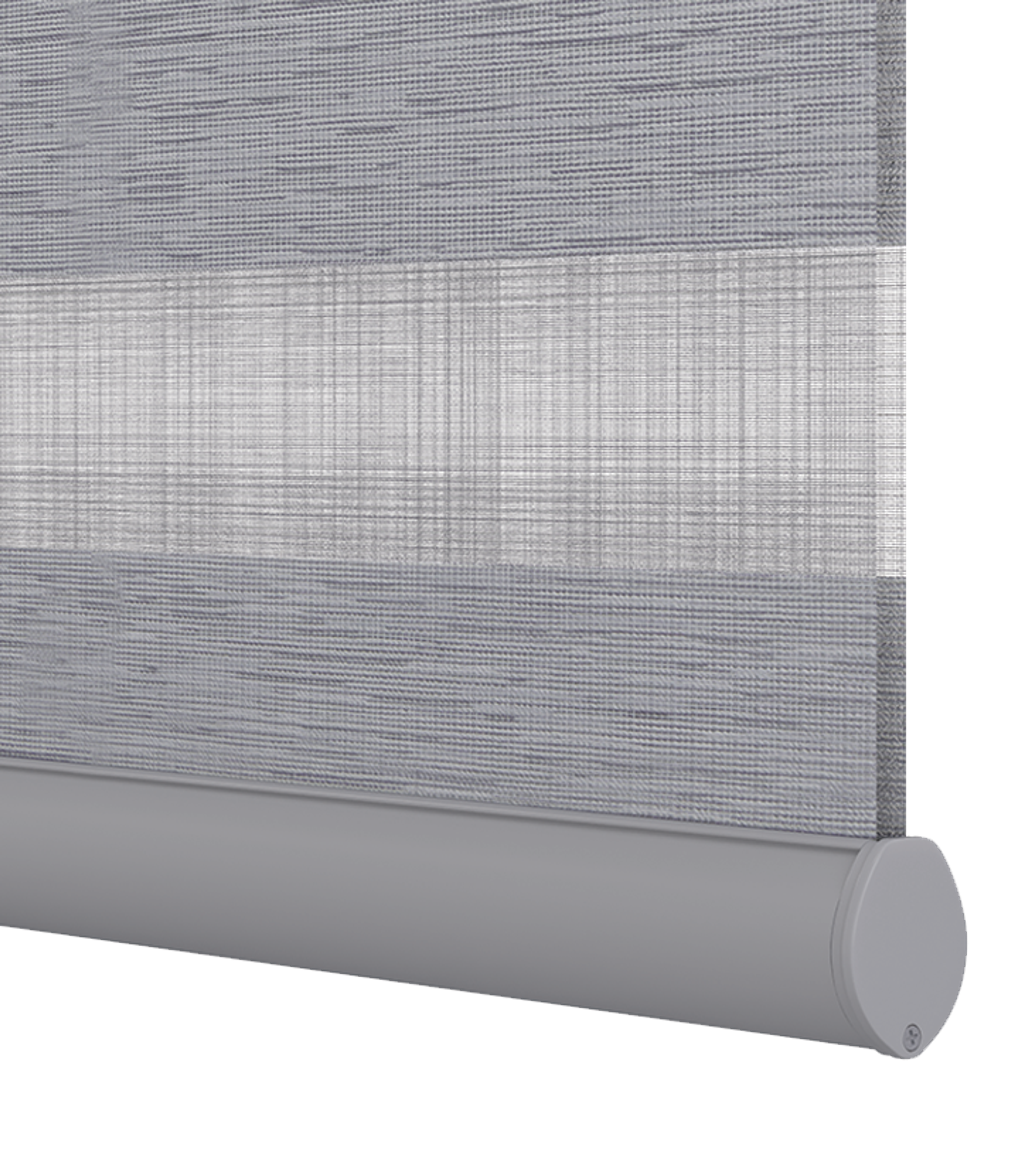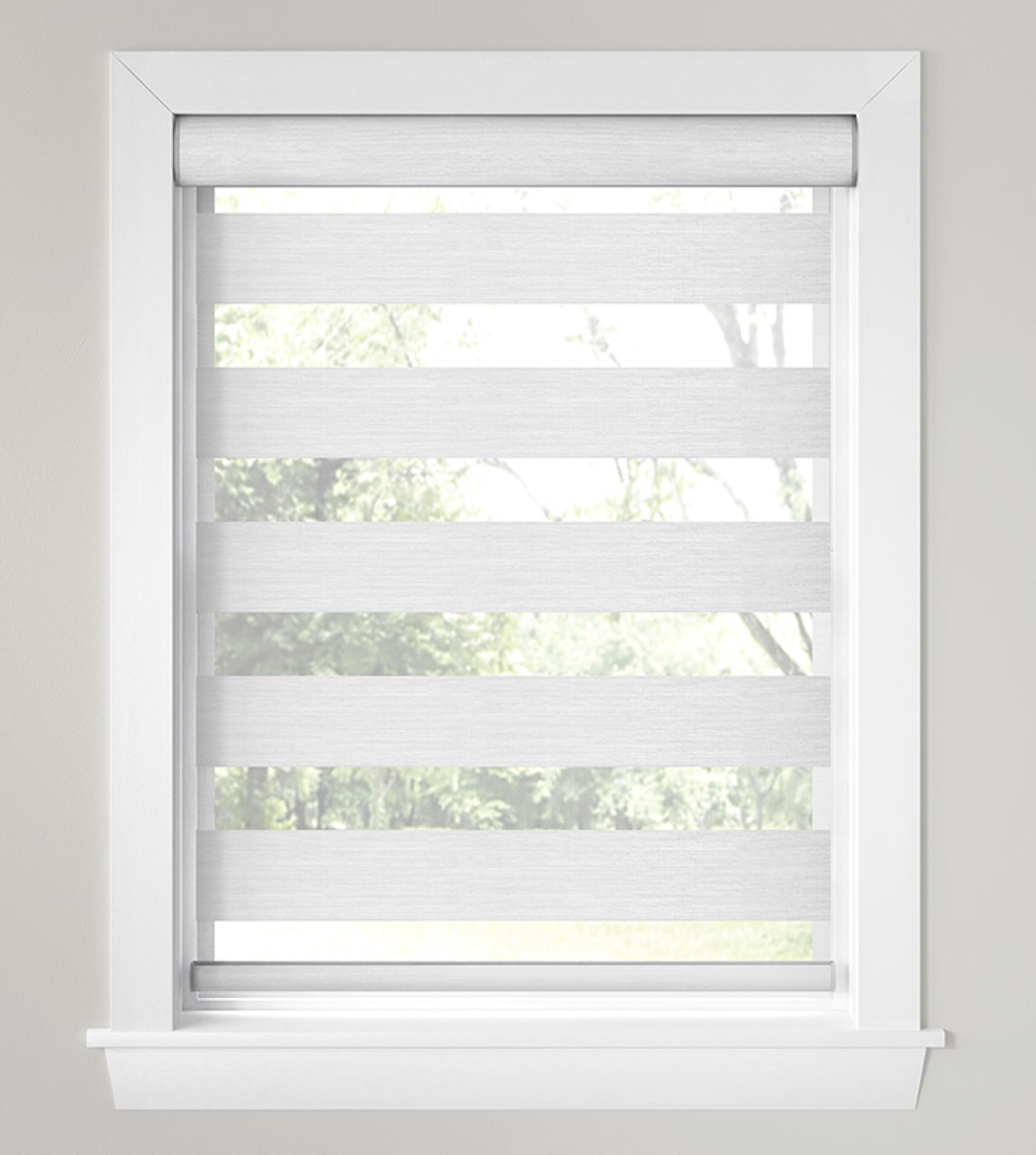A modern and versatile window treatment that will transform any room. Banded shades, also referred to as dual shades or zebra shades, combine solid and sheer linear bands to form a single shade that gives you precise light control. When aligned, solid bands seamlessly block natural light and ensure privacy; when shifted, the sheer bands transition to diffuse light and reveal the view.